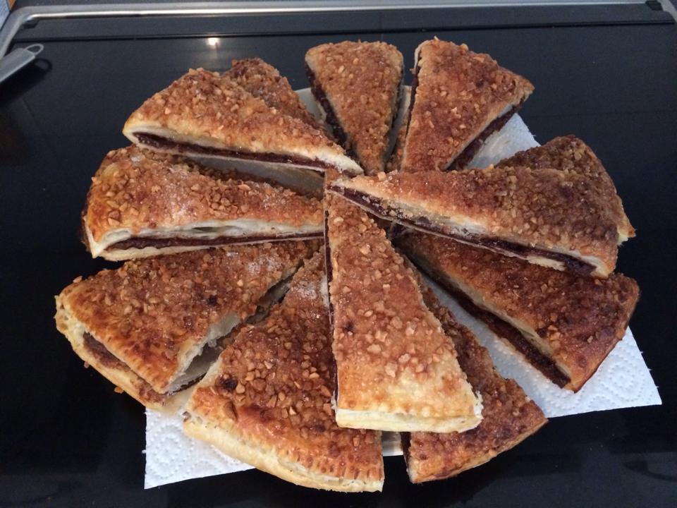 Hojaldre de nutela y almedra picada