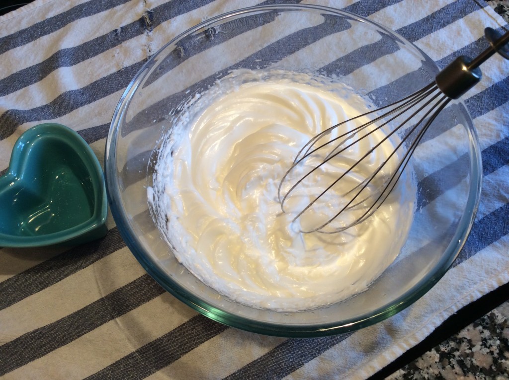 4. Montamos las claras a punto de nieve. Cuando vayáis a mitad de proceso hay que añadirle el azúcar, y montarlas hasta que quede un merengue firme
