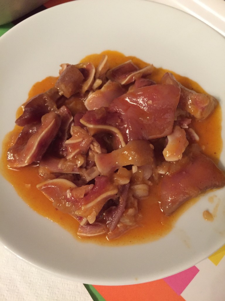 - Rectificamos de sal y dejamos que se cocine durante 20 minutos a fuego lento, hasta que la salsa quede espesa y la oreja tierna. Se puede ir añadiendo agua caliente si vemos que espesa mucho.