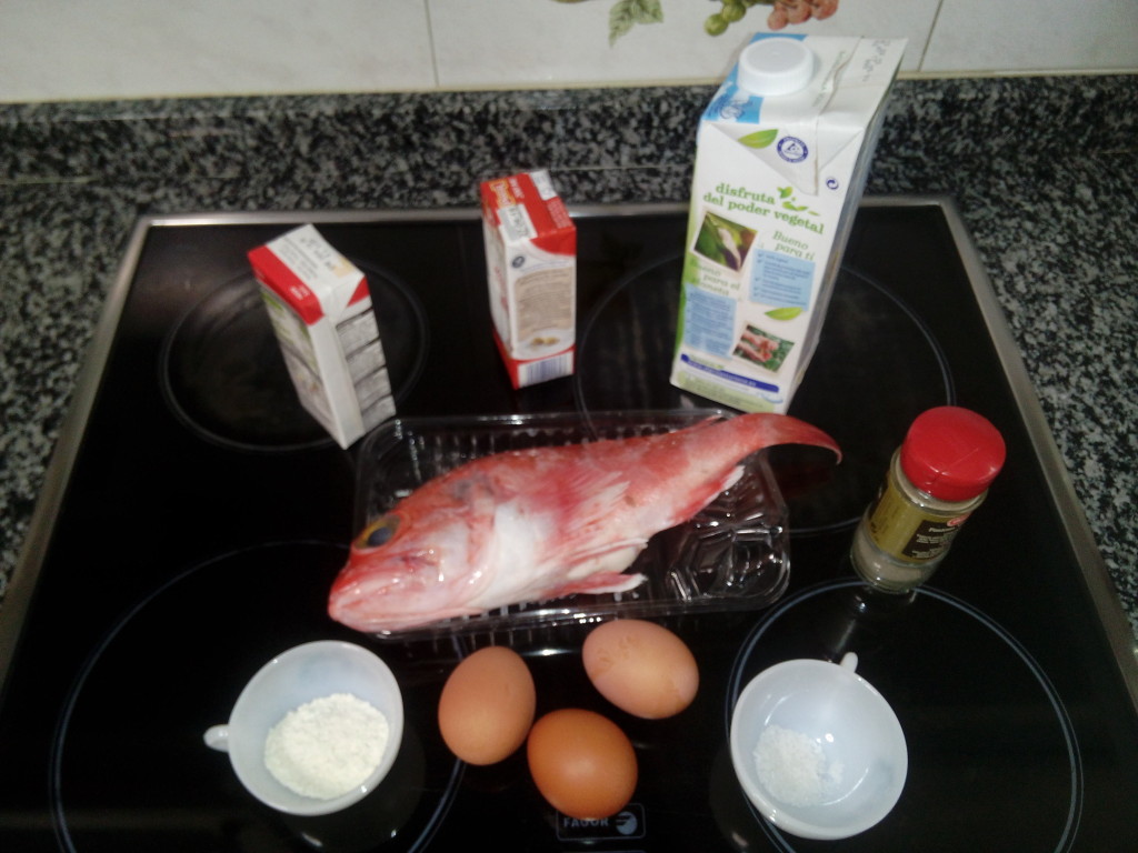 3. Poner en un recipiente para batir el cabracho desmenuzado junto con todos los ingredientes. Batir.